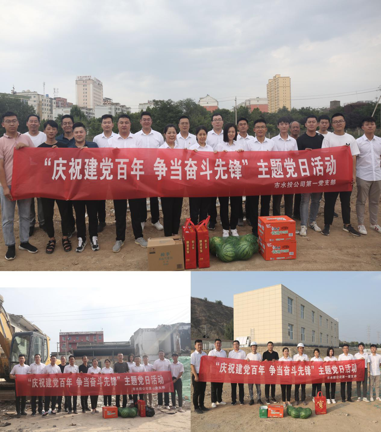 在建黨一百周年之際,為充分表達(dá)黨組織對一線黨員干部群眾頂酷暑、戰(zhàn)高溫,攻堅(jiān)克難抓建設(shè)的工作干勁的鼓勵(lì)和肯定,對一線黨員干部群眾的生產(chǎn)生活提供一定的幫助,為他們送去組織的關(guān)心和關(guān)愛,在學(xué)習(xí)活動(dòng)結(jié)束后,支部部分黨員、入黨積極分子共同來到干河綜合治理工程3標(biāo)段項(xiàng)目工地、姚暹渠禹都段項(xiàng)目工地和鴨子池項(xiàng)目工地,詳細(xì)了解各段施工進(jìn)度及存在的困難問題,現(xiàn)場溝通交流、積極出謀劃策,同時(shí)為各項(xiàng)目工地黨員干部群眾送上了西瓜、飲料、防蚊液、花露水等消暑品。