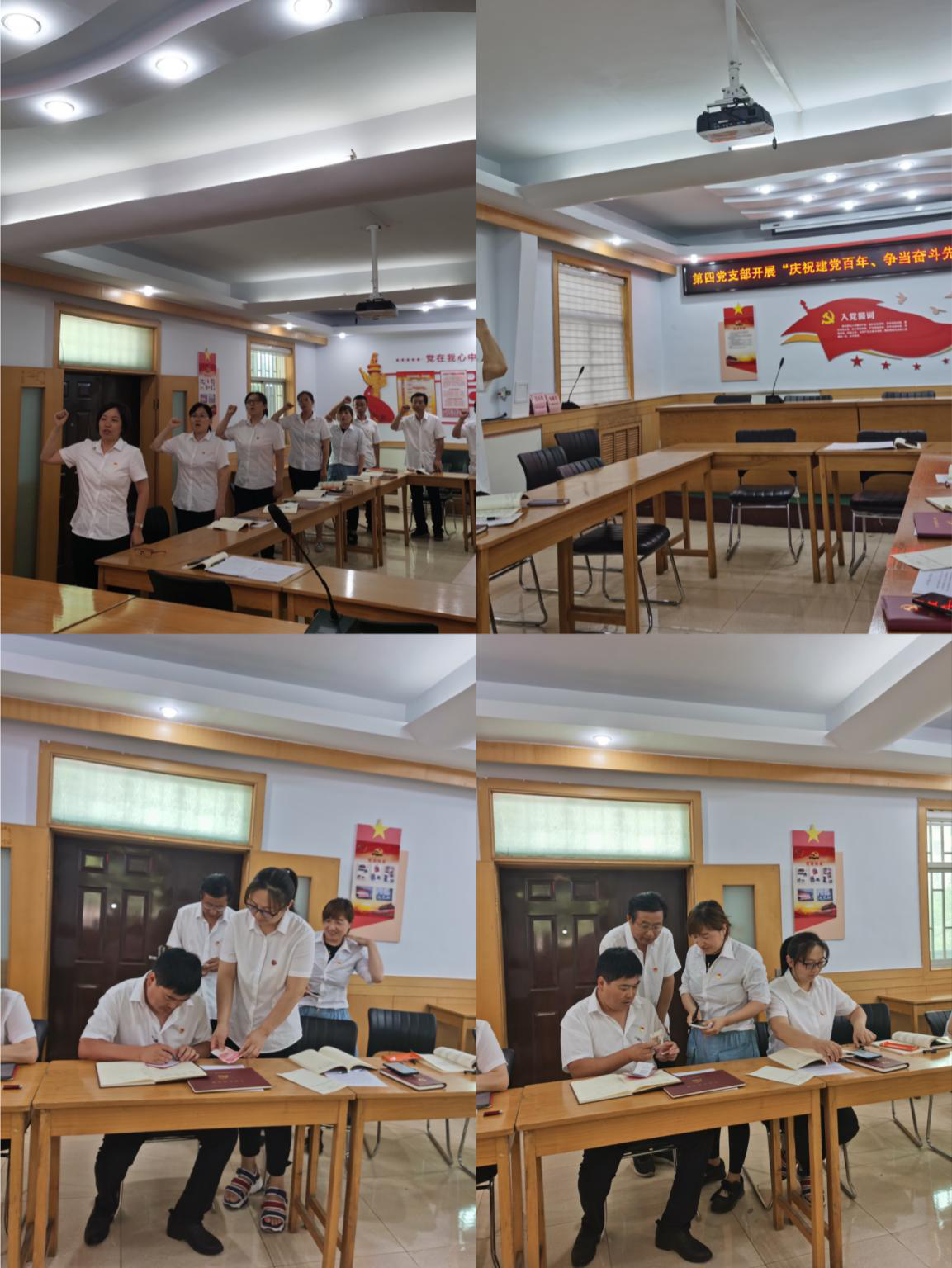 下午,支部集中收繳了本月黨費,進行了登記。全體黨員面向黨旗重溫了入黨誓詞。