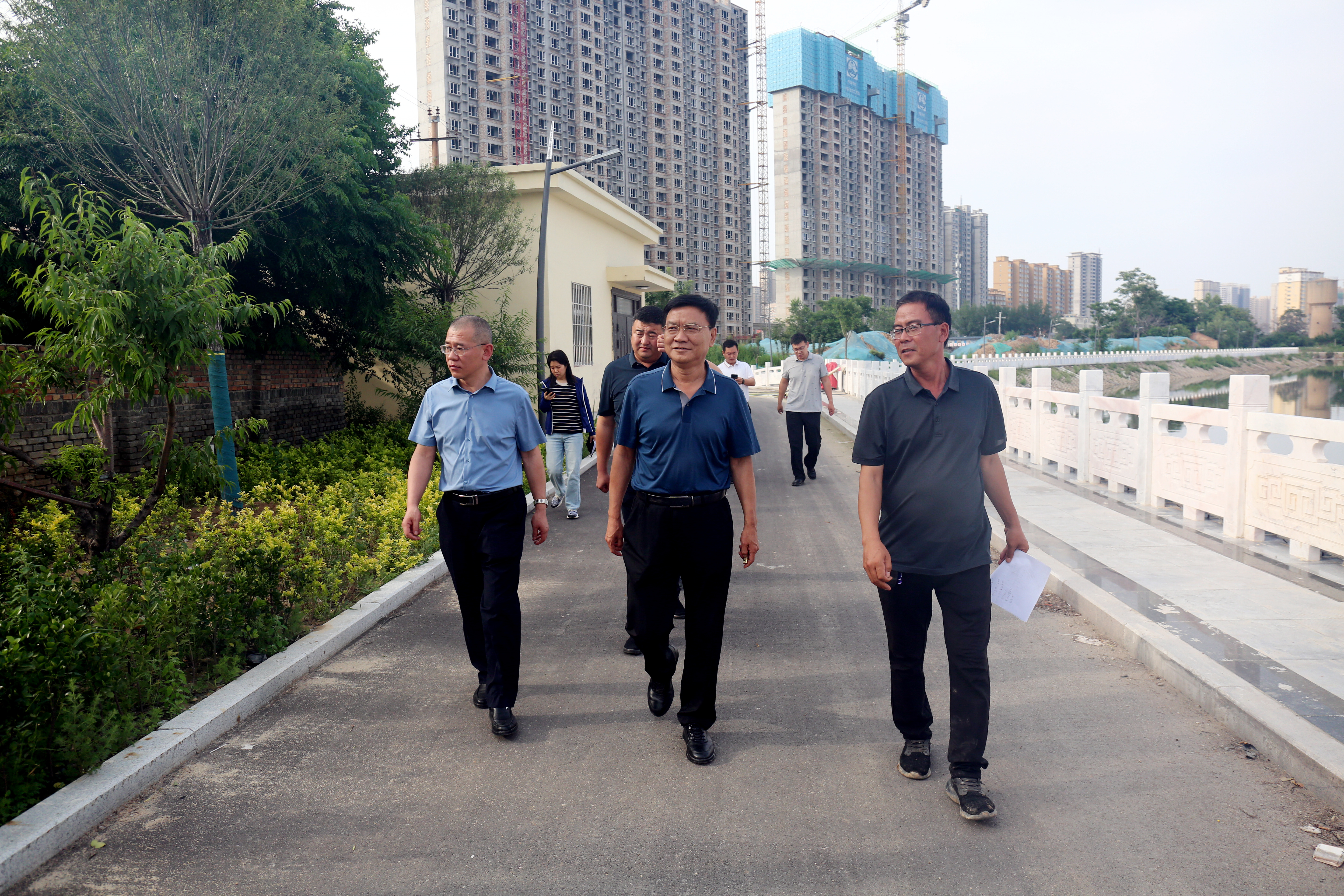 6月19日,公司董事長崔作銘帶領(lǐng)相關(guān)業(yè)務(wù)部門赴干河綜合治理工程現(xiàn)場察看防汛備汛和水環(huán)境治理工作,公司副總經(jīng)理范永勝陪同。