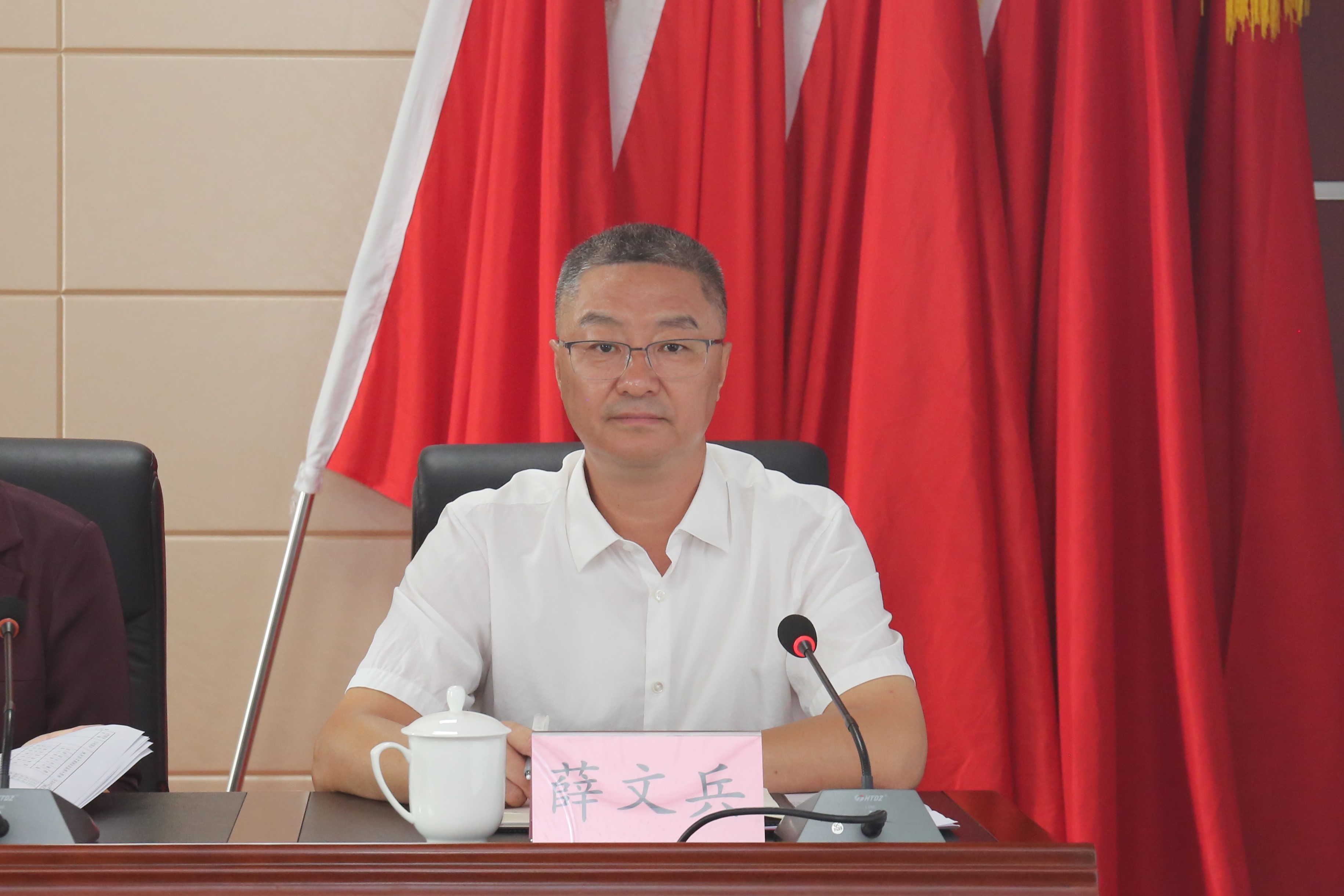 丁文玲宣讀了市委關于薛文兵同志任市水投公司黨委書記的通知。