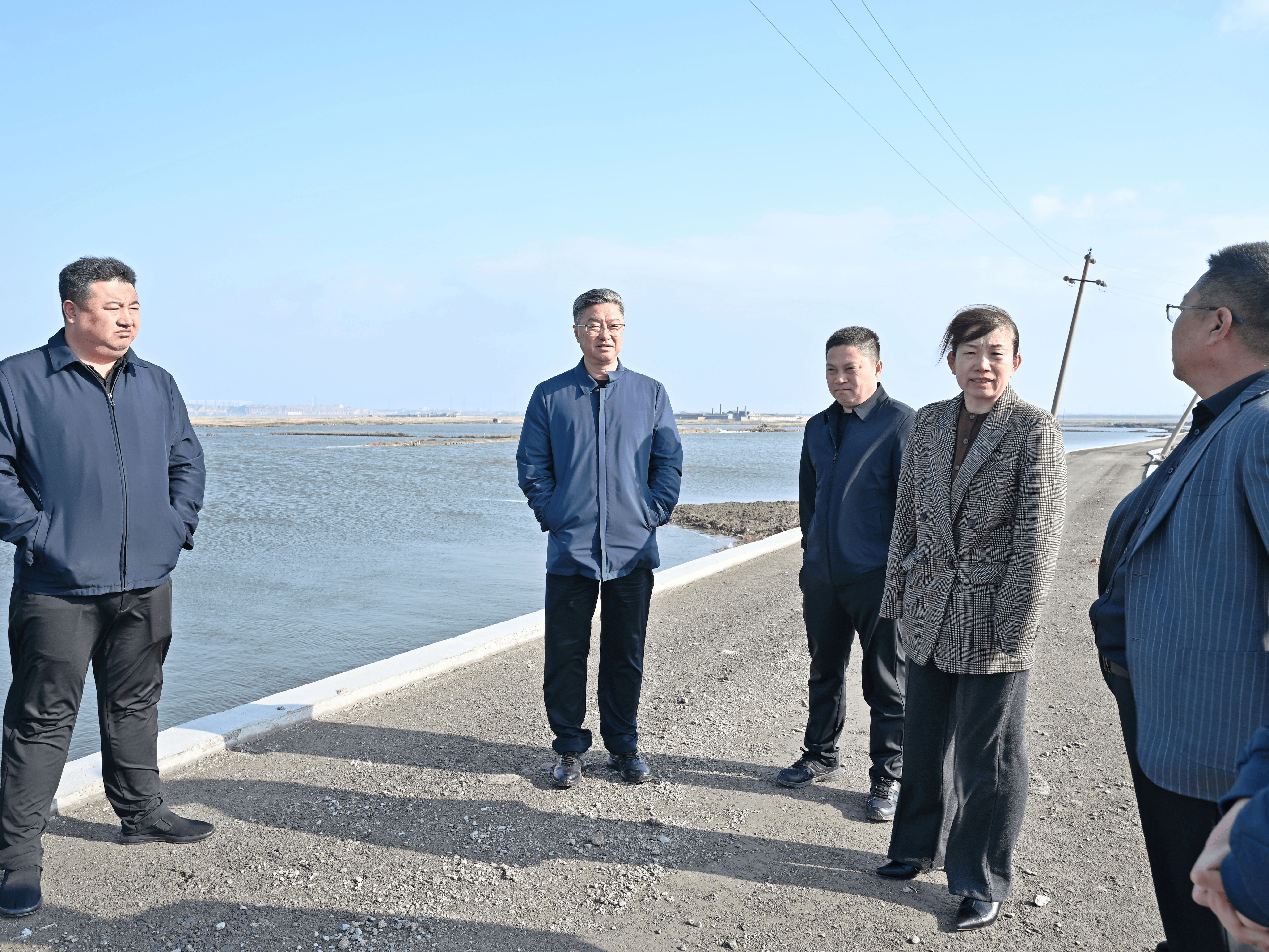 在項目現(xiàn)場,薛文兵詳細聽取關(guān)于鹽湖堤埝除險加固及生態(tài)修復(fù)項目節(jié)后的施工計劃安排、安全生產(chǎn)保障等工作匯報,并實地查看了現(xiàn)場施工進度、安全防護措施、質(zhì)量管控等重要環(huán)節(jié),全面了解項目復(fù)工開工整體推進態(tài)勢。他要求,全體人員要迅速收心歸位,嚴守安全底線、筑牢安全防線,緊盯既定目標加壓奮進,確保項目順利推進。