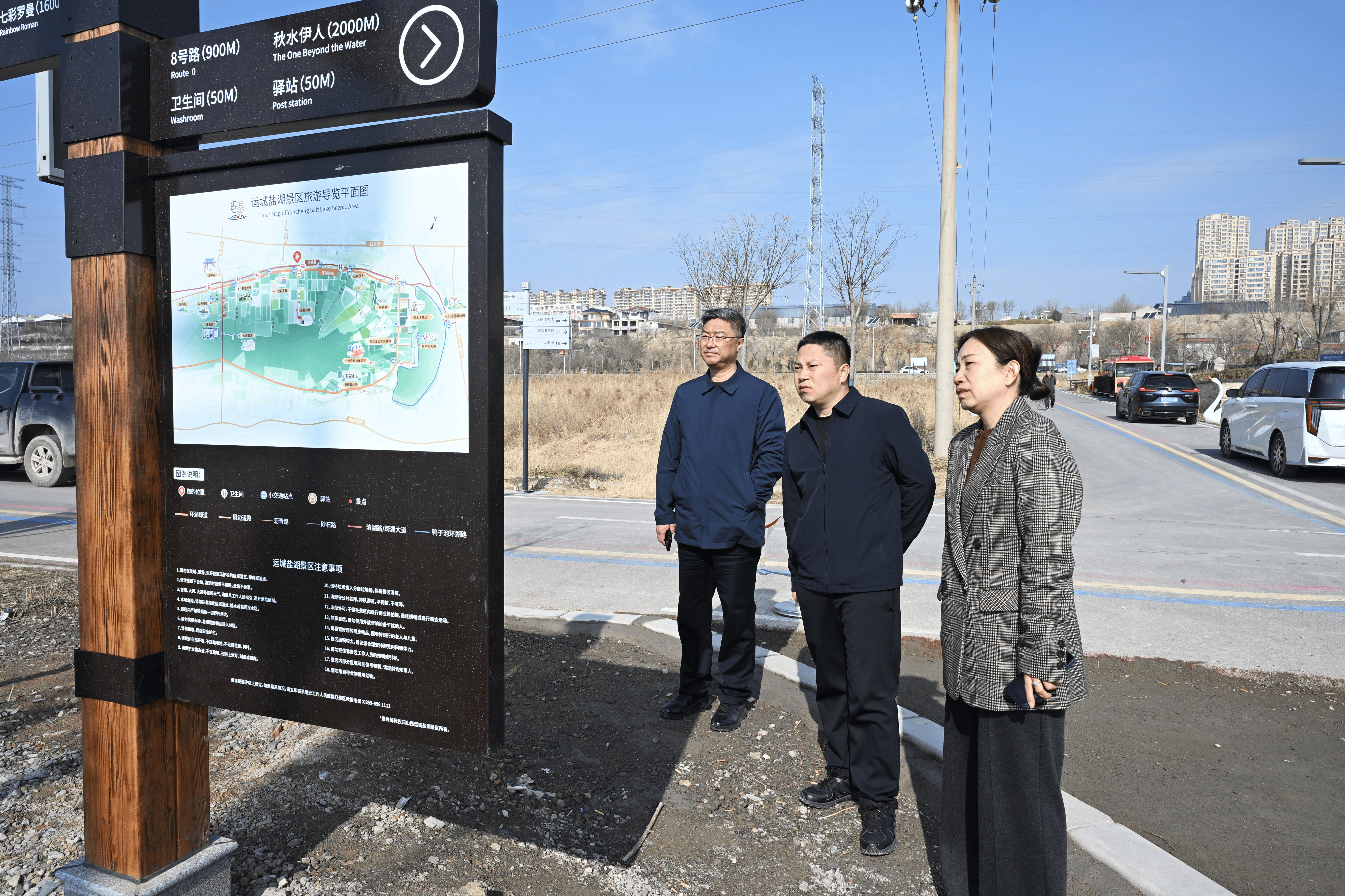 隨后,薛文兵實地查看五步制鹽體驗區(qū)施工現(xiàn)場以及鹽湖景點導(dǎo)視牌設(shè)置情況。他強調(diào),五步制鹽體驗區(qū)已進入最后攻堅階段,要在抓實安全保障的前提下,確保項目按時間節(jié)點順利完工;對景點導(dǎo)視牌的布局、內(nèi)容及外觀設(shè)計進行優(yōu)化,要充分融入鹽池生態(tài)環(huán)境,與自然景觀和諧統(tǒng)一。